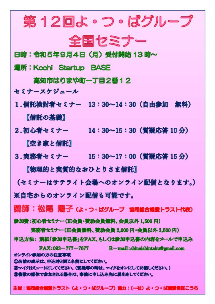 【福岡】一般社団法人よ・つ・ば親愛信託普及連合