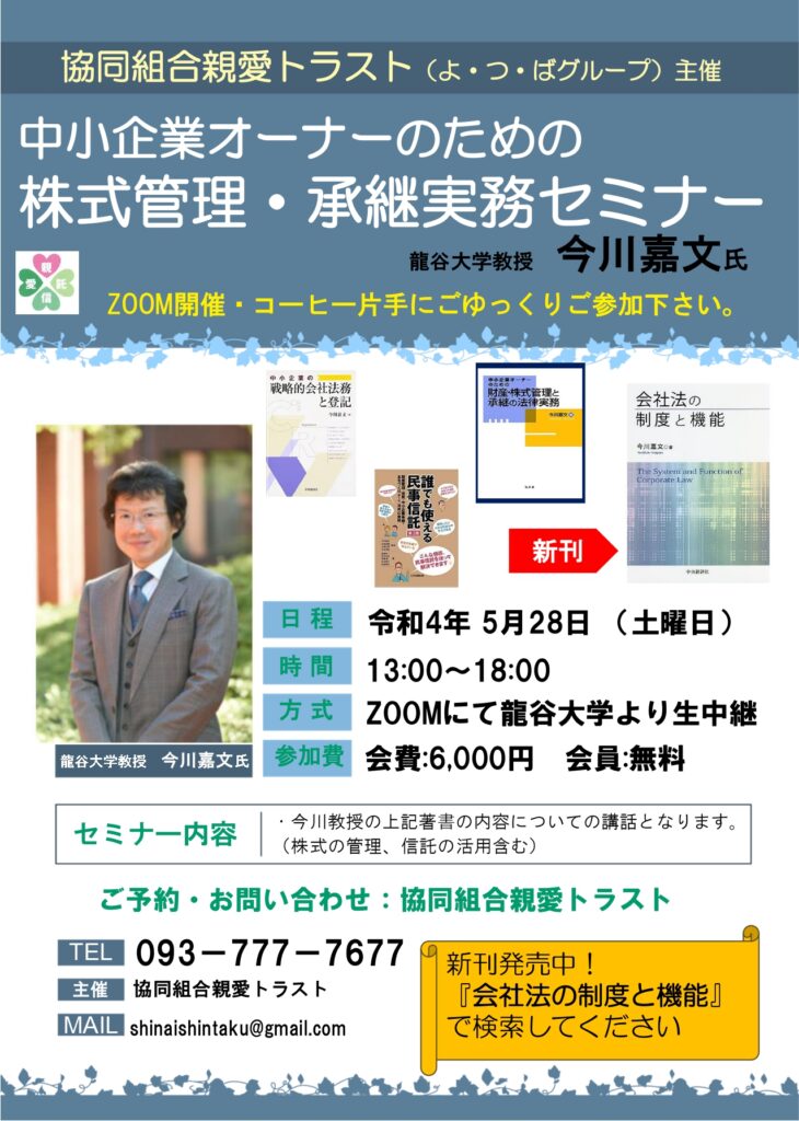 5月28日(土)に今川教授のセミナーを開催いたします!
