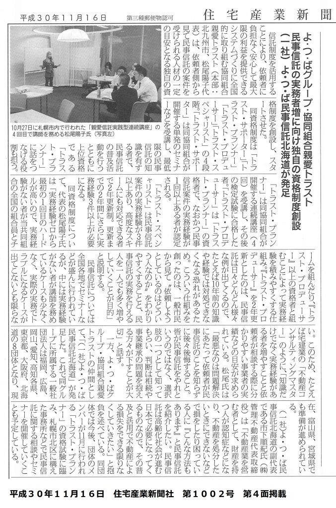 10月27日、協同組合親愛トラスト主催の親愛信託実践型4回連続講座の第4回最終講座に住宅産業新聞社様が取材に来て下さいました。