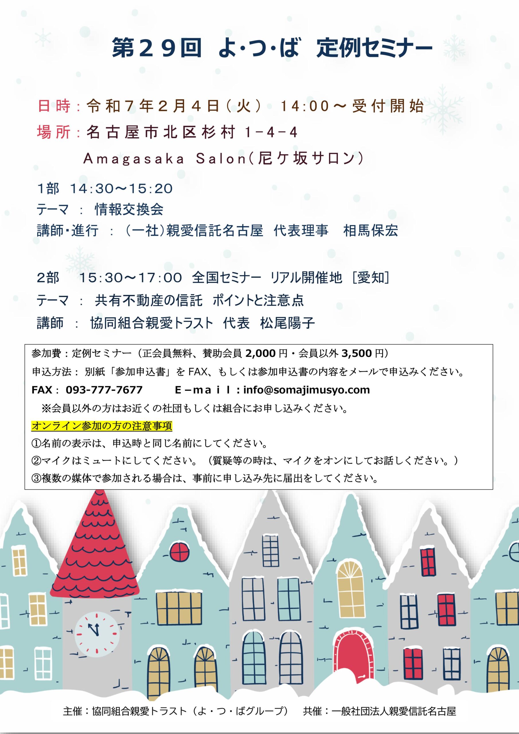 第29回全国セミナーは2月4日(火)に名古屋で開催します。