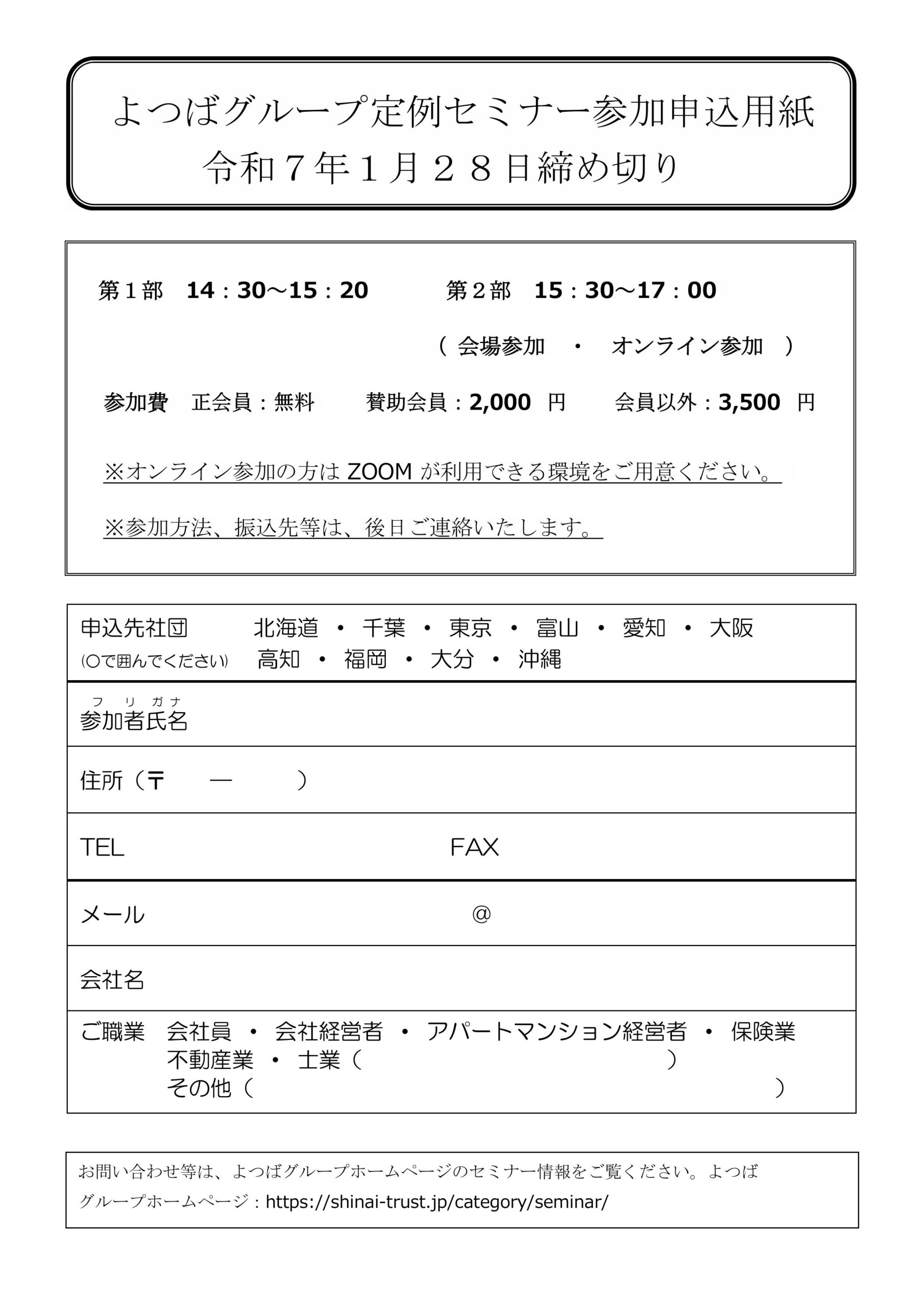 よ・つ・ばグループでは、信託の普及を目的として、毎月4日に全国セミナーを開催しています。