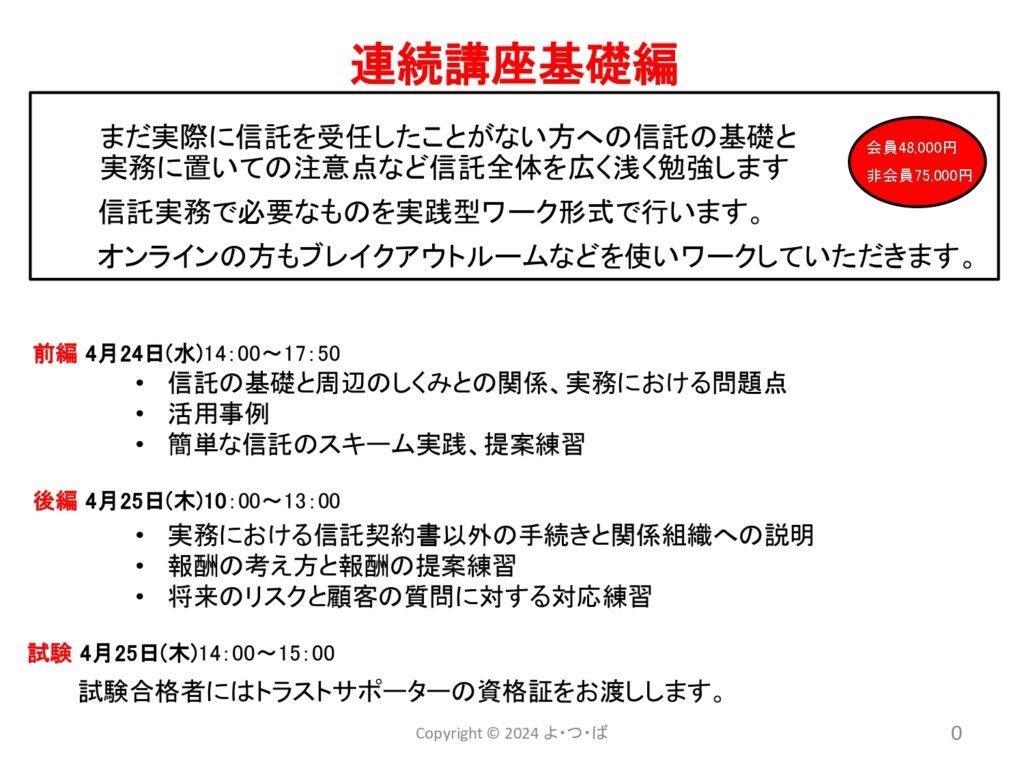 まだ実際に信託を受任したことがない方への信託の基礎と実務に置いての注意点など信託全体を広く浅く勉強します