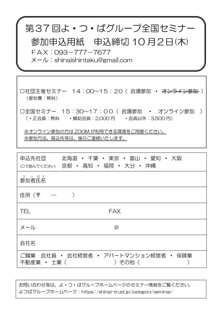 参加をご希望の方は、下記申込書をお近くのよ・つ・ばグループへFAXまたは