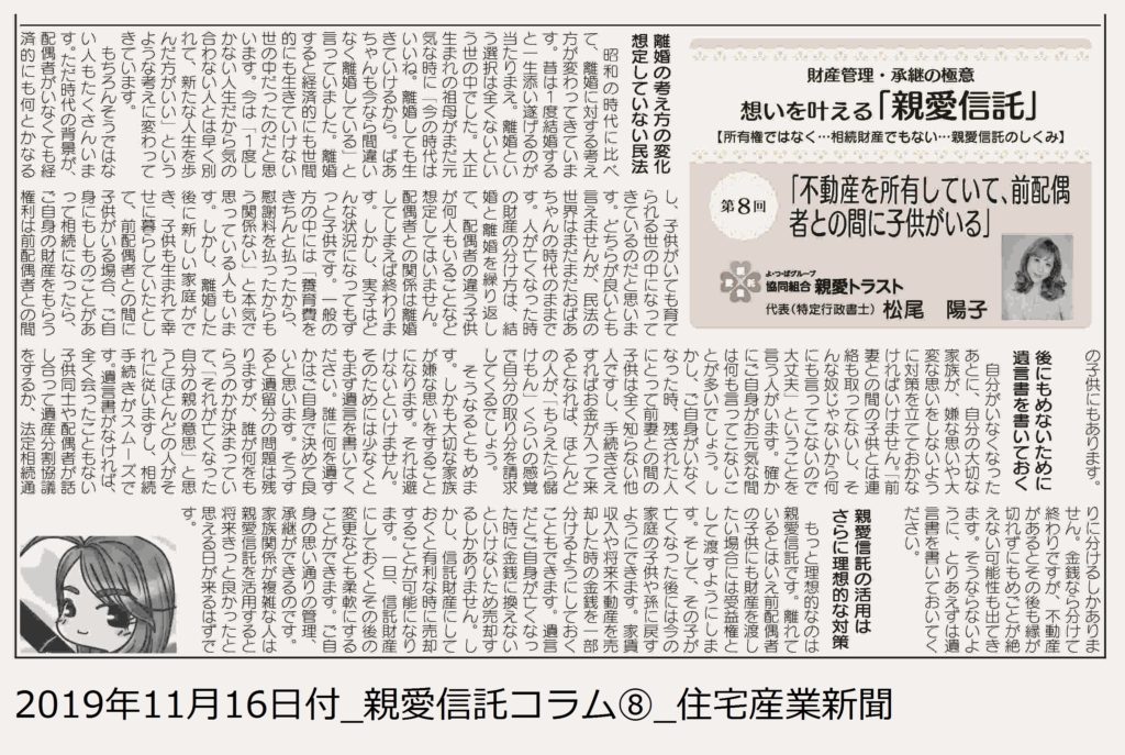 2019年11月16日付_親愛信託コラム⑧_住宅産業新聞