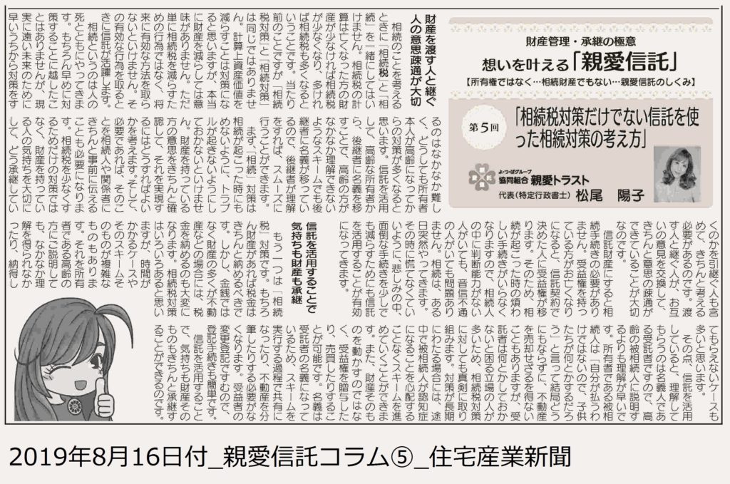 2019年8月16日付_親愛信託コラム⑤_住宅産業新聞